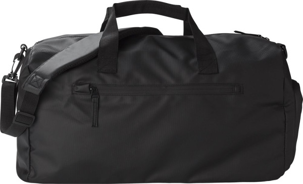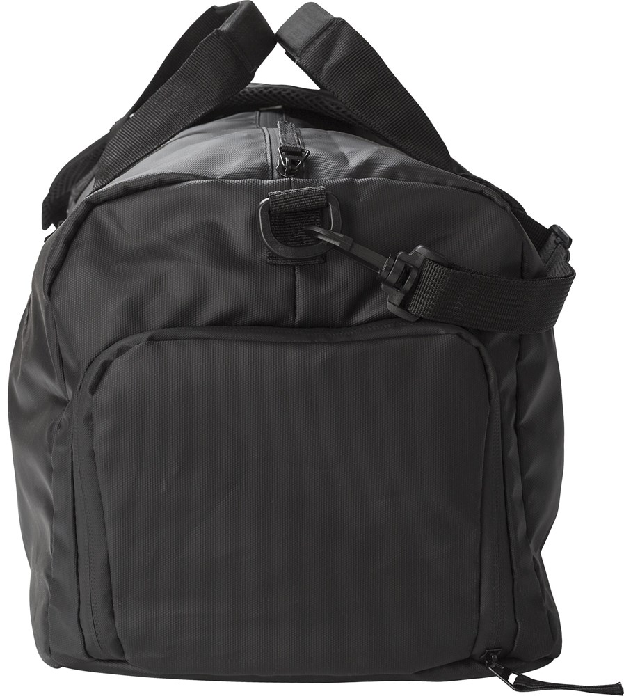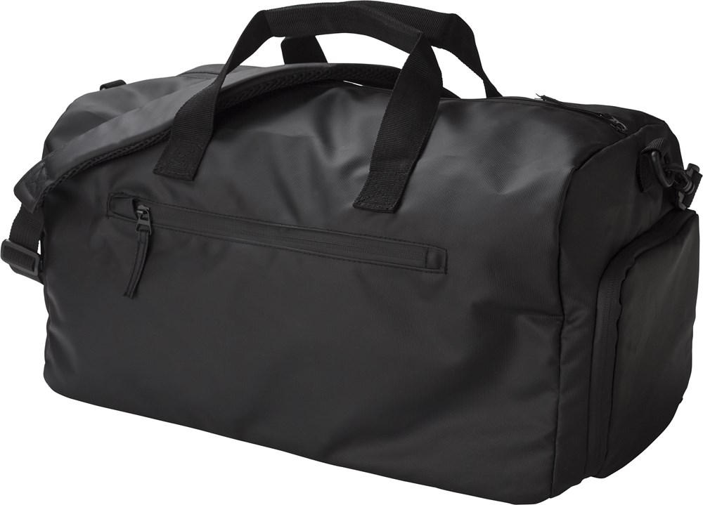 Polyester (600D) reistas. 210D polyester op de rits, gecoat met 600D polyester. Waterafstotend, inclusief ritssluiting. Met antidiefstalvak, vakje voor een waterfles, laptopvak met klittenbandsluiting en andere kleine vakjes.