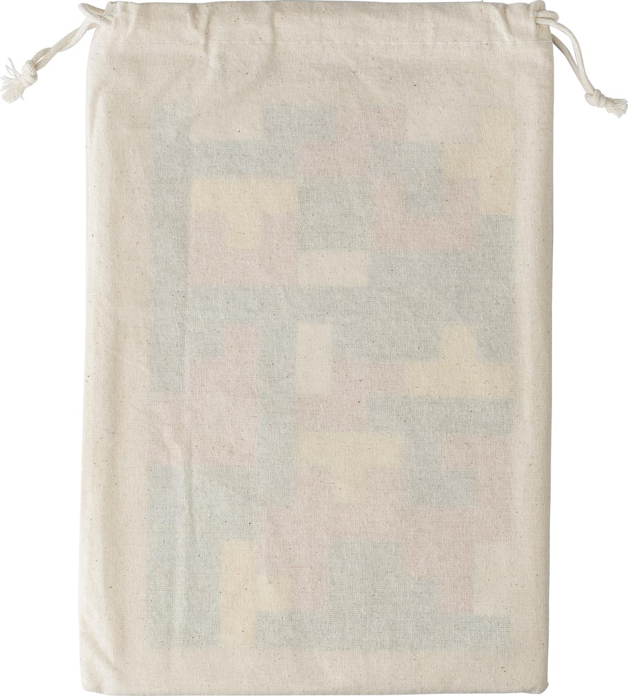 Houten puzzelspel verpakt in katoenen zakje met trekkoord. 40 puzzelstukken.