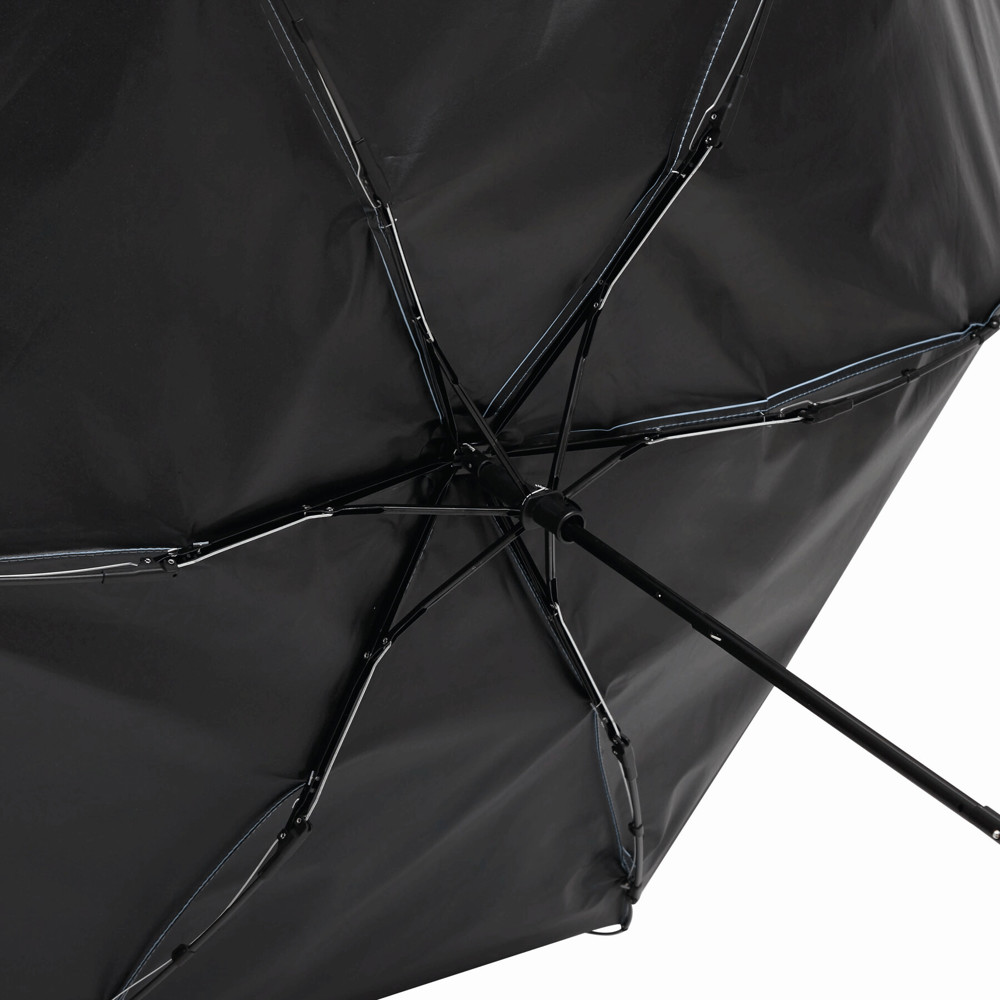Opvouwbare paraplu SUNDANCE, met UV-bescherming in een identiek gekleurde hoes: 3-delige metalen steel, metalen/glasvezel baleinen, zwart kunststof handvat met polslus, polyester pongee bespanning UV50+ met zwart gecoate binnenzijde en brede sluitband met klittenbandsluiting.