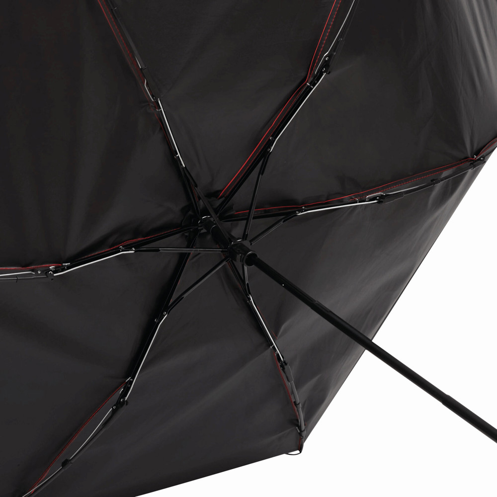 Opvouwbare paraplu SUNDANCE, met UV-bescherming in een identiek gekleurde hoes: 3-delige metalen steel, metalen/glasvezel baleinen, zwart kunststof handvat met polslus, polyester pongee bespanning UV50+ met zwart gecoate binnenzijde en brede sluitband met klittenbandsluiting.