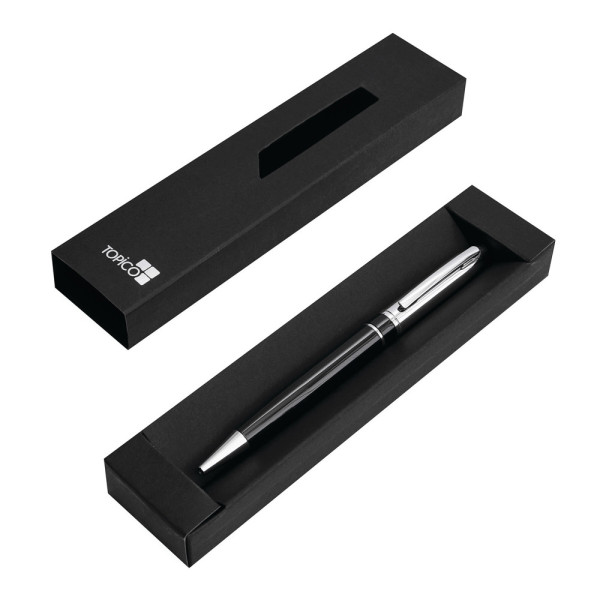 Metalen balpen SILVER LINE: met draaimechanisme, glanzend oppervlak, blauwschrijvend, in geschenkverpakking