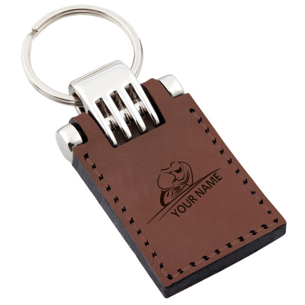 Mooie kwaliteit lederen sleutelhanger met metalen delen, geproduceerd in Europa. Deze hanger wordt voorzien van blinddruk op 2 zijden. Leverbaar in 5 kleuren.
