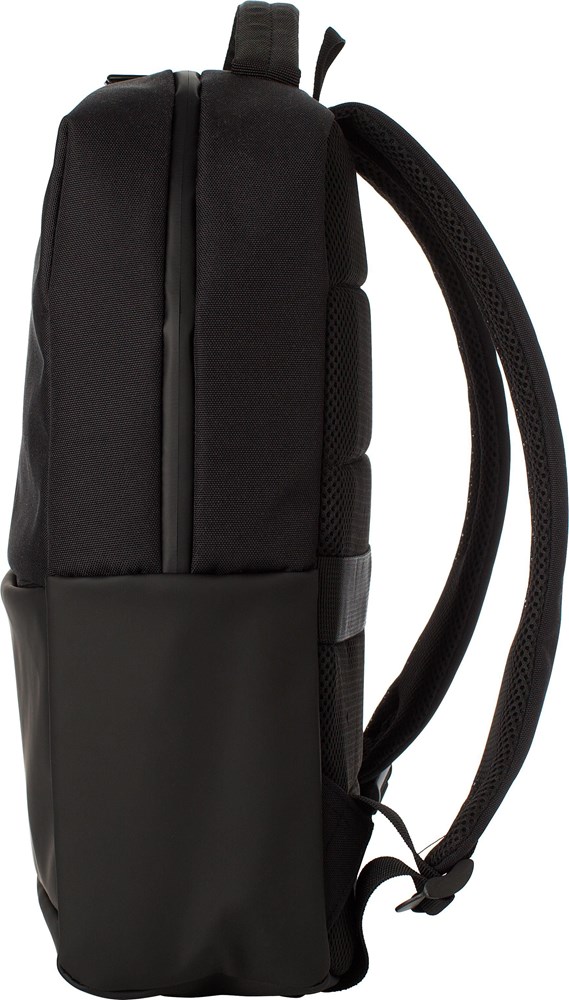Polyester (600D) laptoptas (15 inch). Eén groot vak met ritssluiting bovenaan met meerdere vakken aan de binnenkant. Klein vak met ritssluiting aan de voorkant. Versterkte achterkant en verstelbare banden.