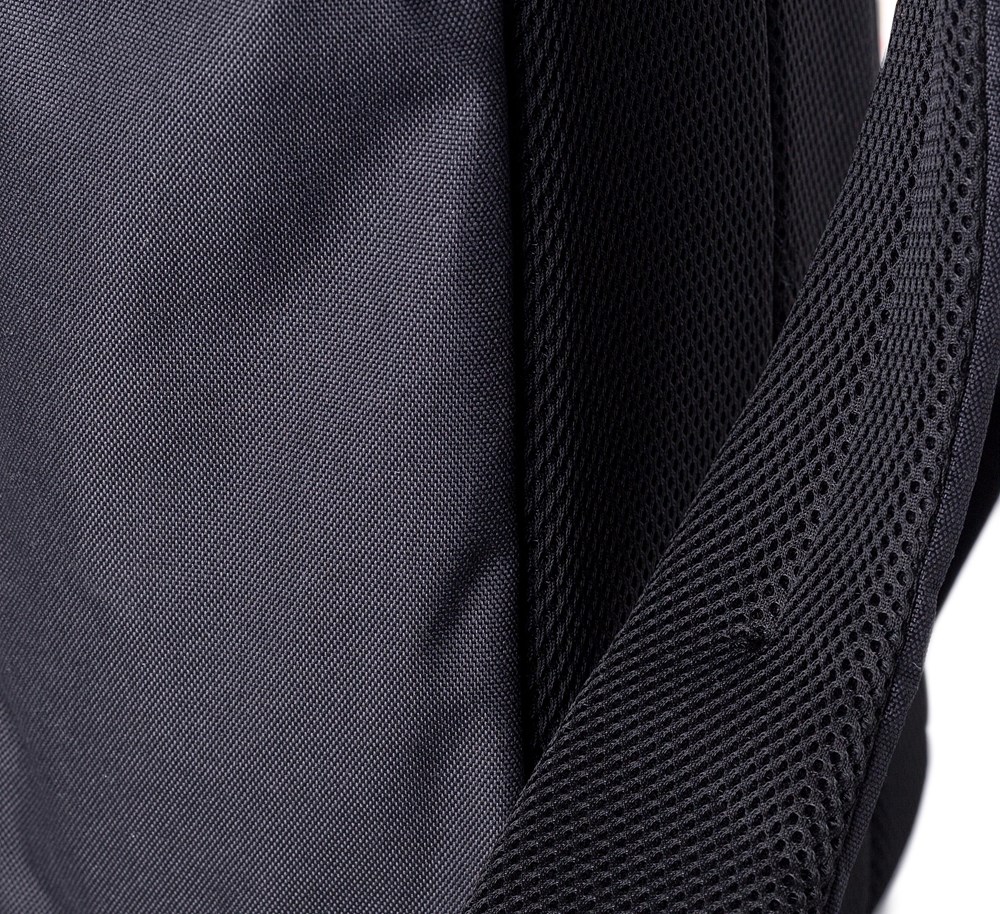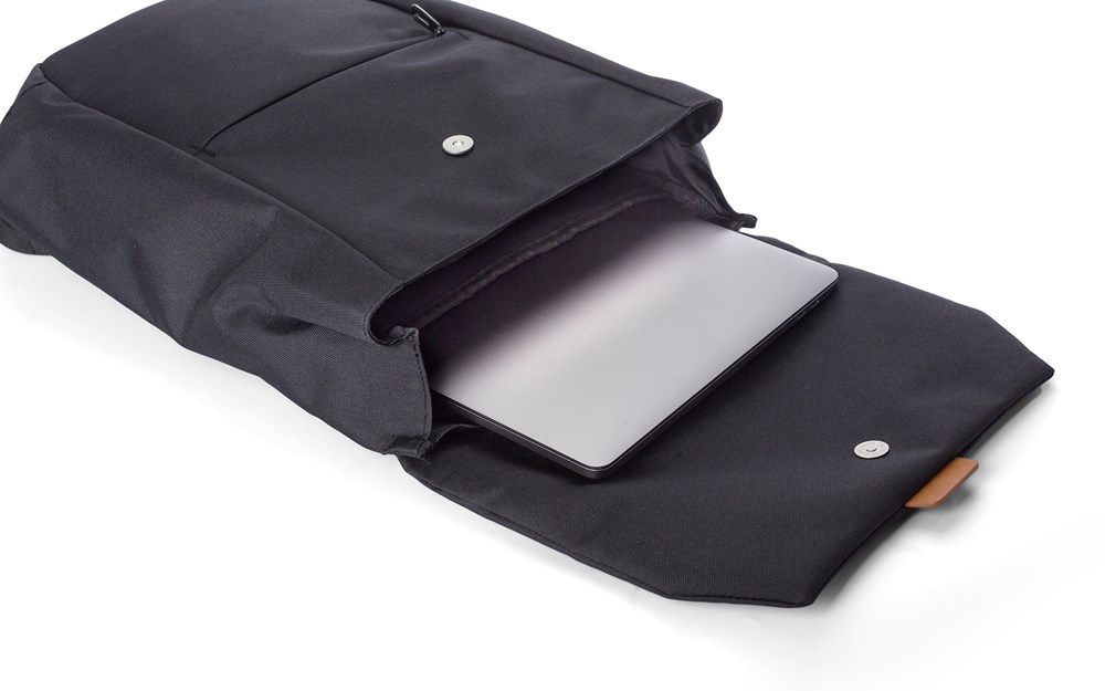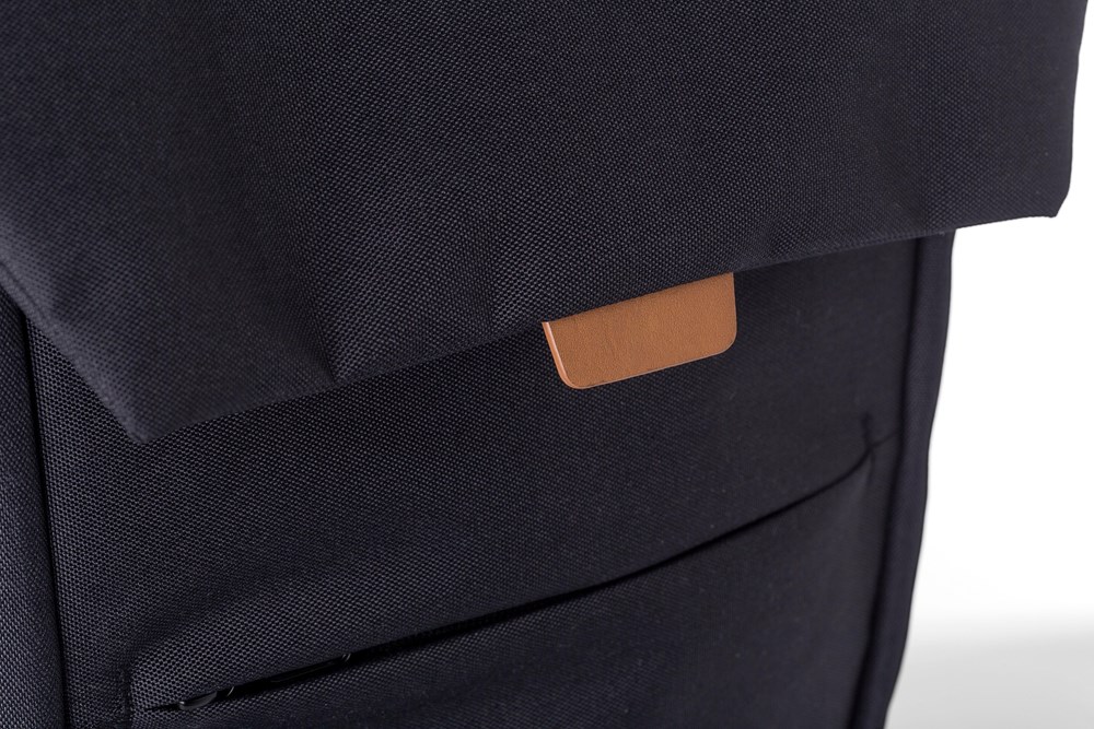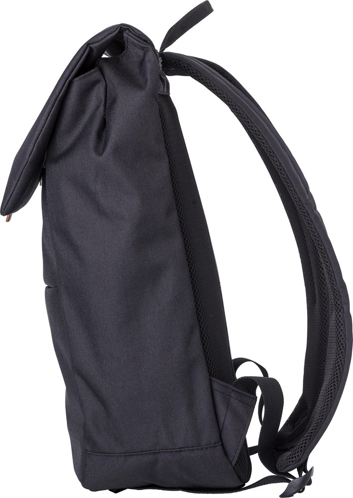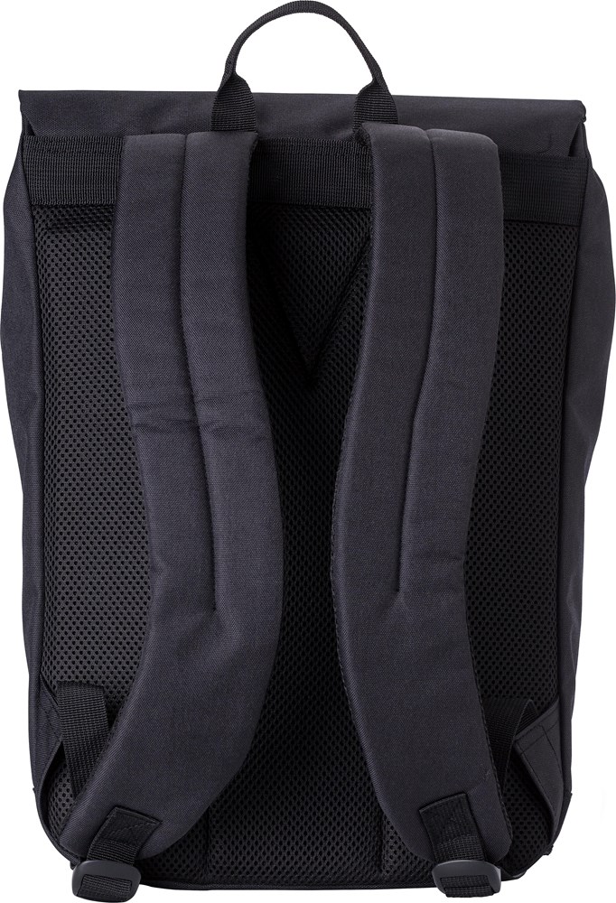 Polyester (600D) twee-tone rugzak met PU-label op de klep. Eén vak met ritssluiting aan de voorkant. Eén groot compartiment aan de bovenkant met metalen sluiting. Laptopvak geschikt voor een 15-inch laptop. De rugzak heeft een versterkte achterkant en verstelbare banden.