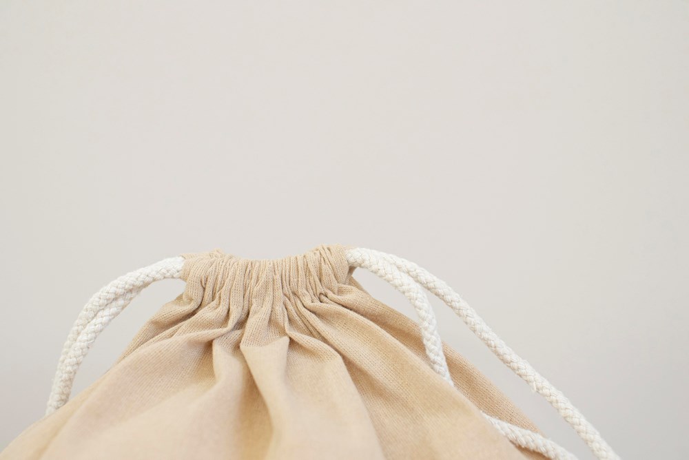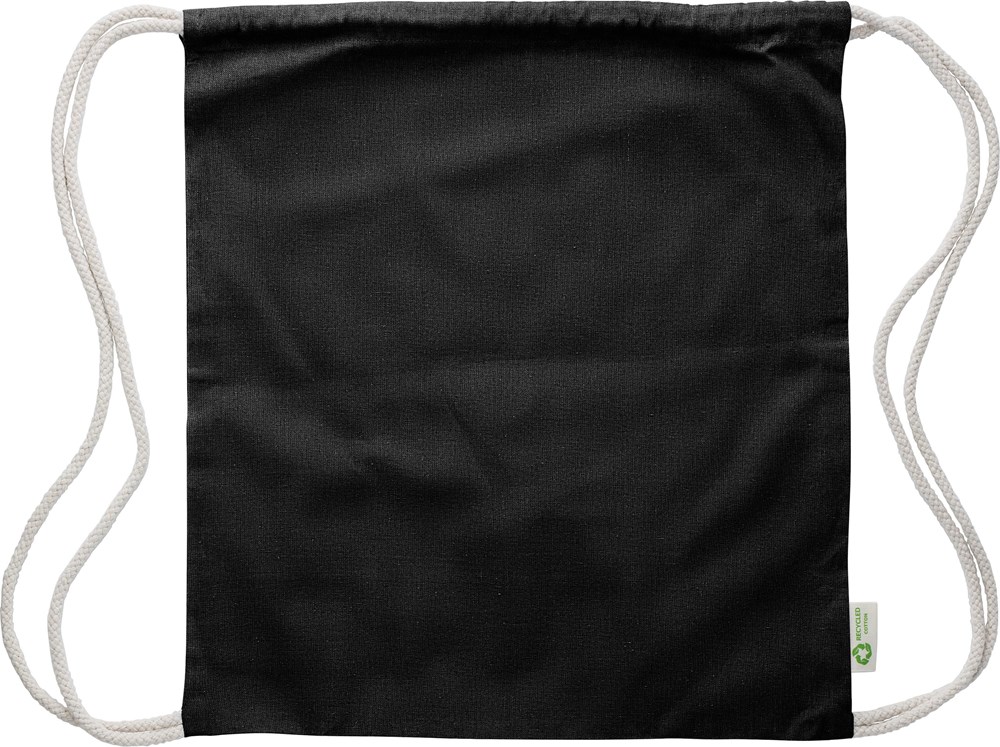 Gerecyclede katoenen trekkoordtas in effen kleur. Stevige koorden en verstevigde hoeken. Gemaakt van 100% gerecycled katoen.