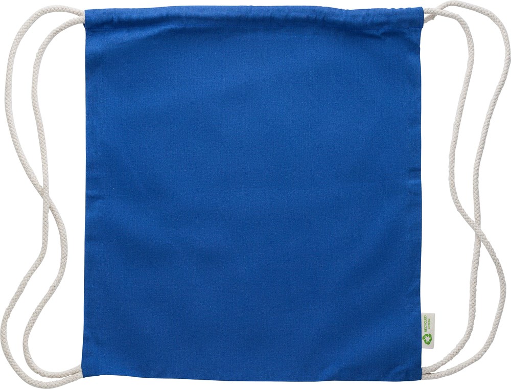 Gerecyclede katoenen trekkoordtas in effen kleur. Stevige koorden en verstevigde hoeken. Gemaakt van 100% gerecycled katoen.