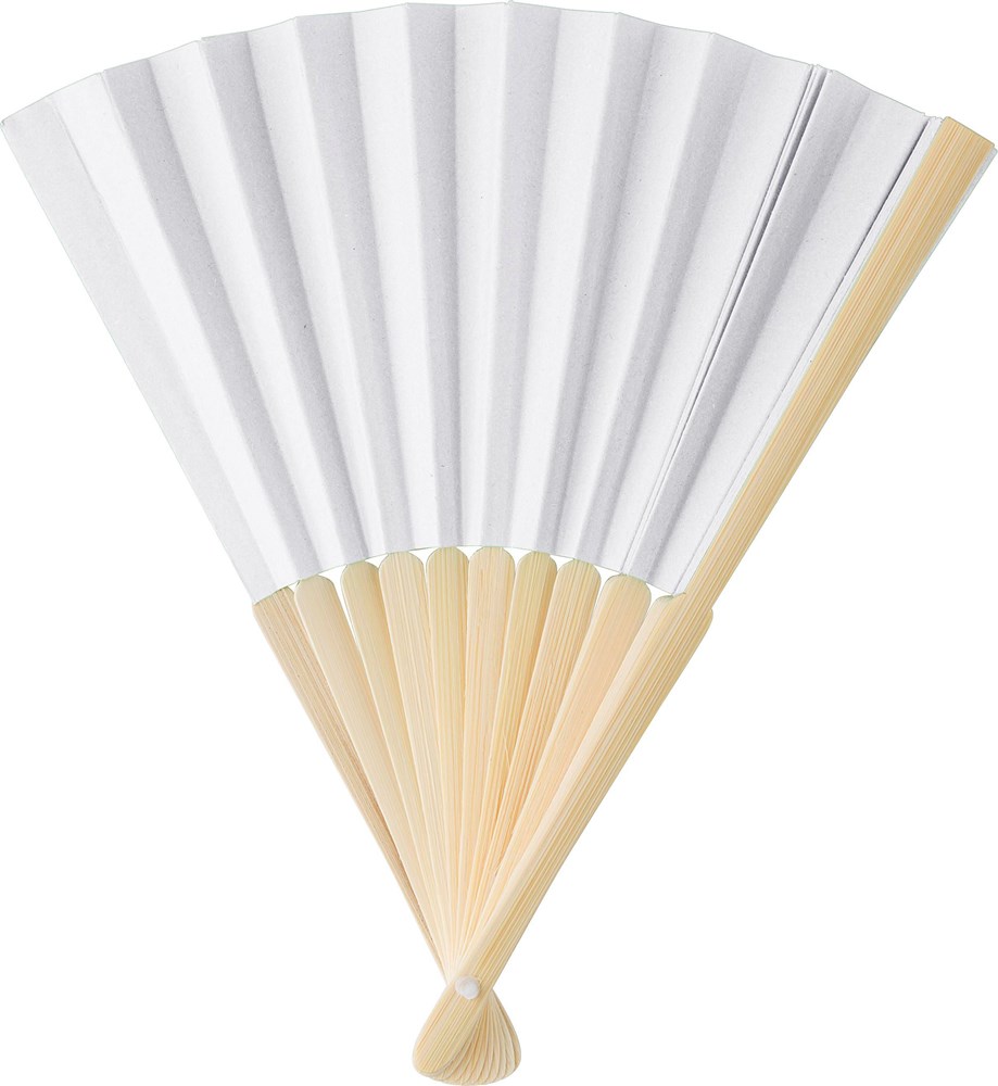 Bamboe handwaaier met papieren stof. Verpakt in bulk.