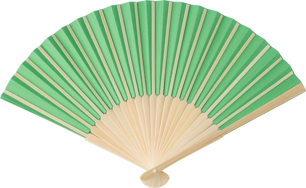 Bamboe handwaaier met papieren stof. Verpakt in bulk.