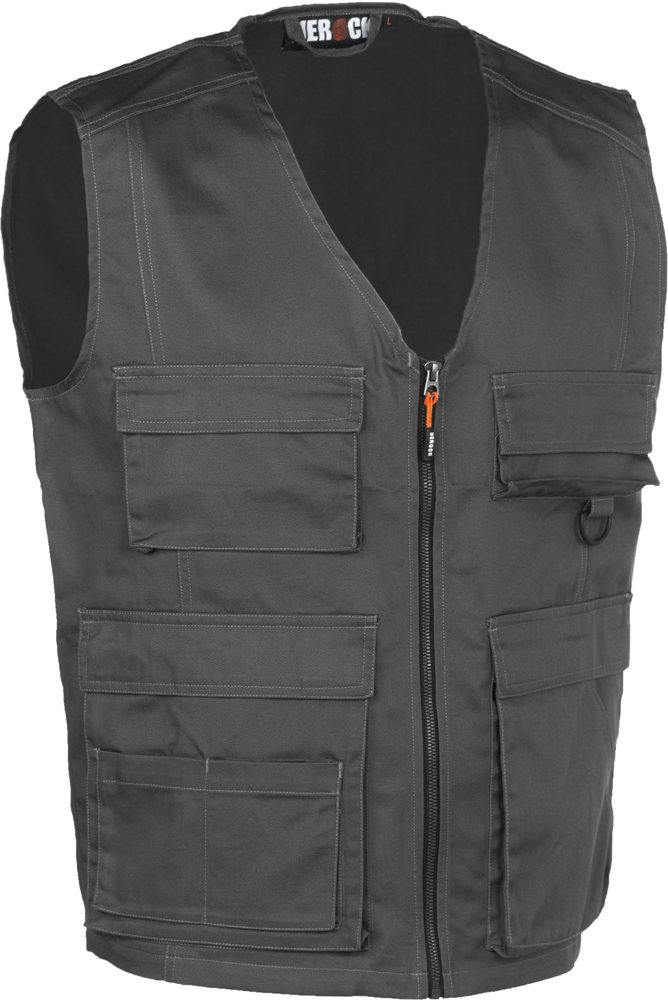Multi-pocket waterafstotende bodywarmer 2 borstzakken 2 steekzakken, 1 met zijopening en 1 met 2 extra kleine zakken met Velcro® sluiting 1 sleutelring Extra grote achterzak (A4) Verwijderbare ritskoordjes EN ISO 13688:2013 EN ISO 15797:2004/AC:2004