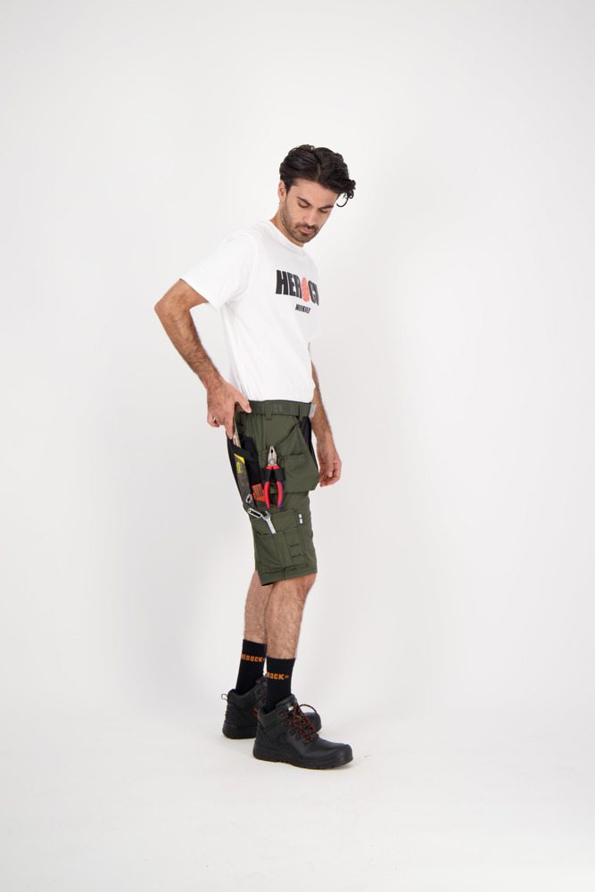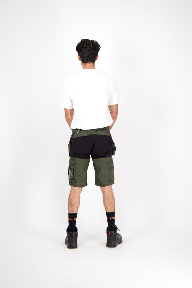 Multi-pocket bermuda met vaste nagelzakken en 4-way stretch stukken op het kruis voor extra bewegingsvrijheid