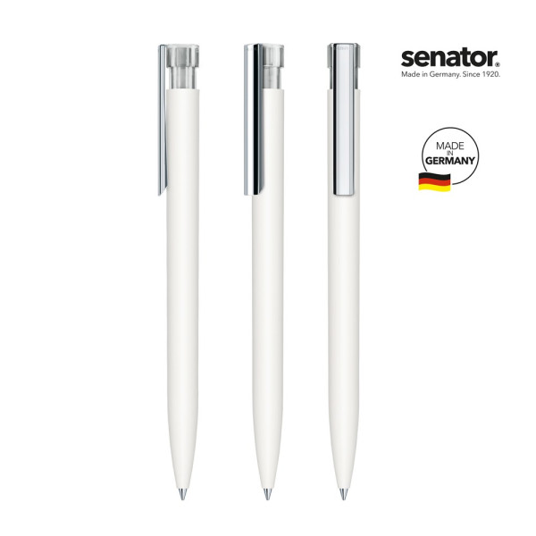 senator® Liberty Soft Touch MC balpen, Fluweelzachte matte soft touch houder, transparant tussenstukje, cliphouder clear, metalen clip, senator® magic flow G2 vulling (1.0 mm), Schrijfkleur: blauw of zwart