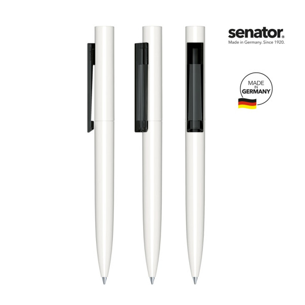 senator® Headliner Polished Draaibalpen, Balpen met draaimechaniek, Glanzend polished houder en bovenstuk met transparante of polished witte clip, senator® magic flow G2 vulling (1.0 mm), Schrijfkleur: blauw of zwart