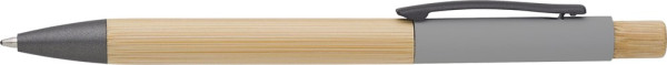 Bamboe balpen met aluminium kleurdetails. Grafietkleurige clip en punt, met bamboe details op de...meer