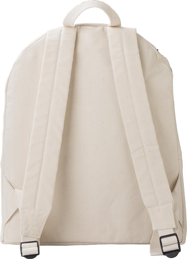 Katoenen (320 g/m2) rugzak met verstelbare bandjes. Eén groot vak met ritssluiting, één klein vak aan de voorzijde met ritssluiting.