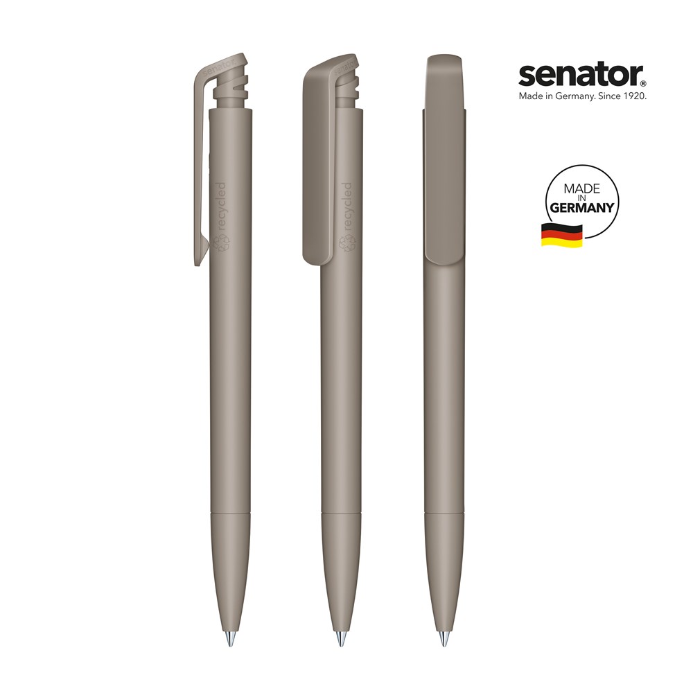 senator® Trento Matt Recycled Balpen, zichtbare onderdelen uit gerecycled materiaal, Matte houder, senator® magic flow G2 langschrijfvulling. Schrijfkleur: blauw of zwart. Lichte oneffenheden in het oppervlak van het