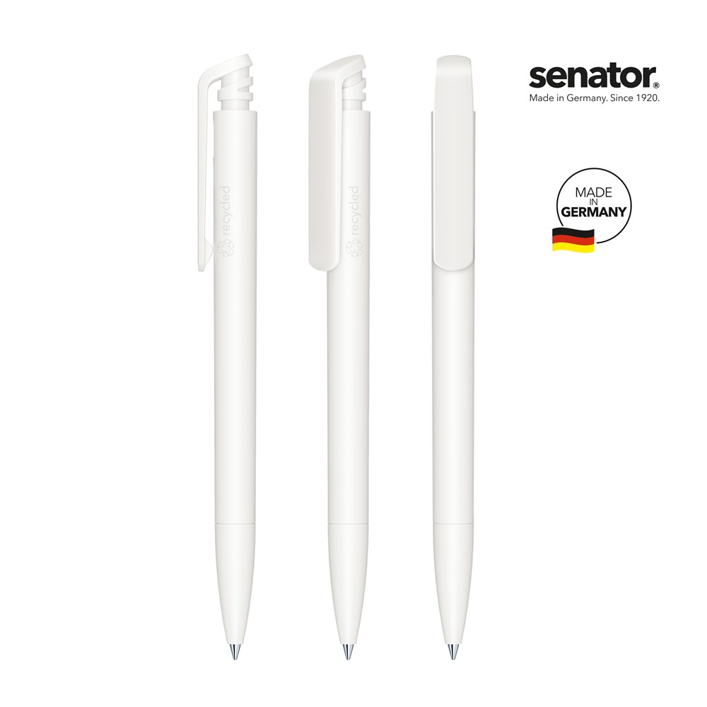 senator® Trento Matt Recycled Balpen, zichtbare onderdelen uit gerecycled materiaal, Matte houder, senator® magic flow G2 langschrijfvulling. Schrijfkleur: blauw of zwart. Lichte oneffenheden in het oppervlak van het