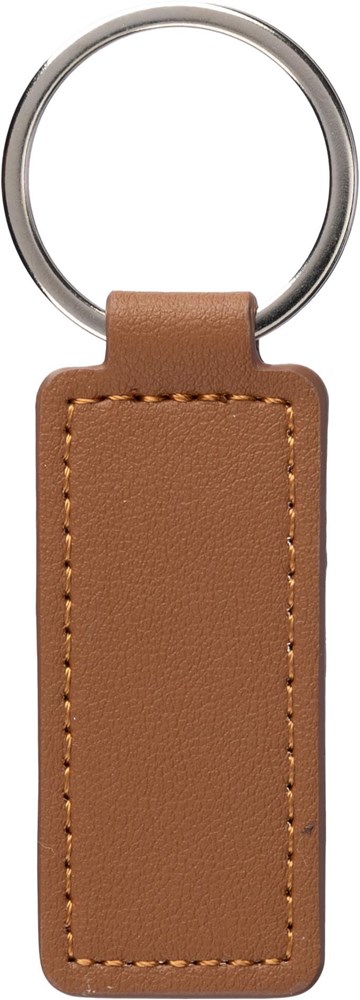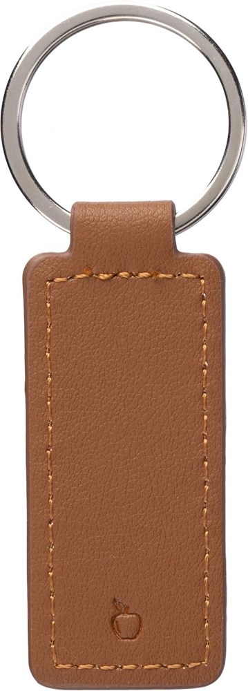 Sleutelhanger van appelleer en PU met metalen ring. Gemaakt van 30% appelleer en 70% PU. Inclusief diepdruk in de vorm van een appel. Verpakt in een éénkleurig bedrukt kraftpapier kartonnen hoes.
