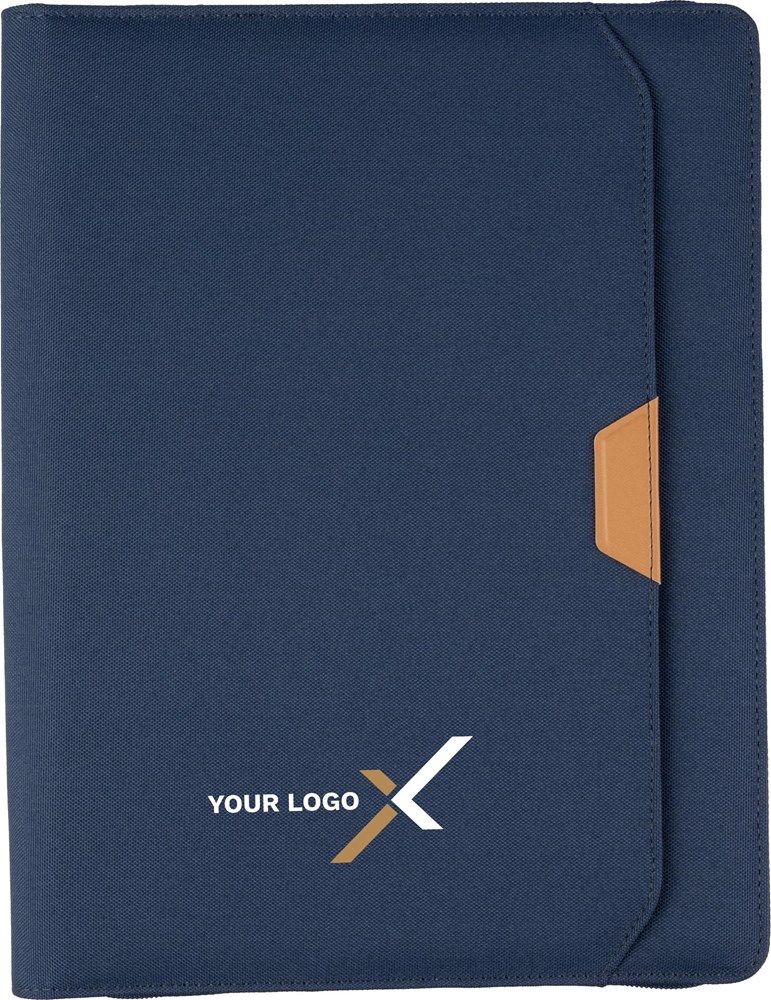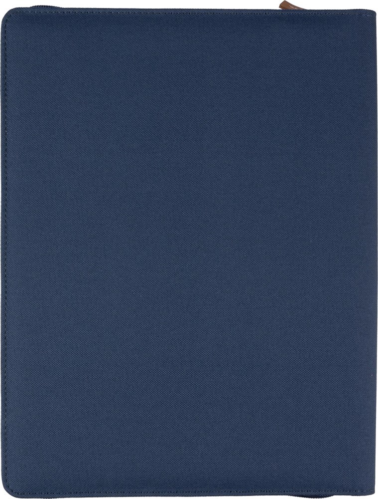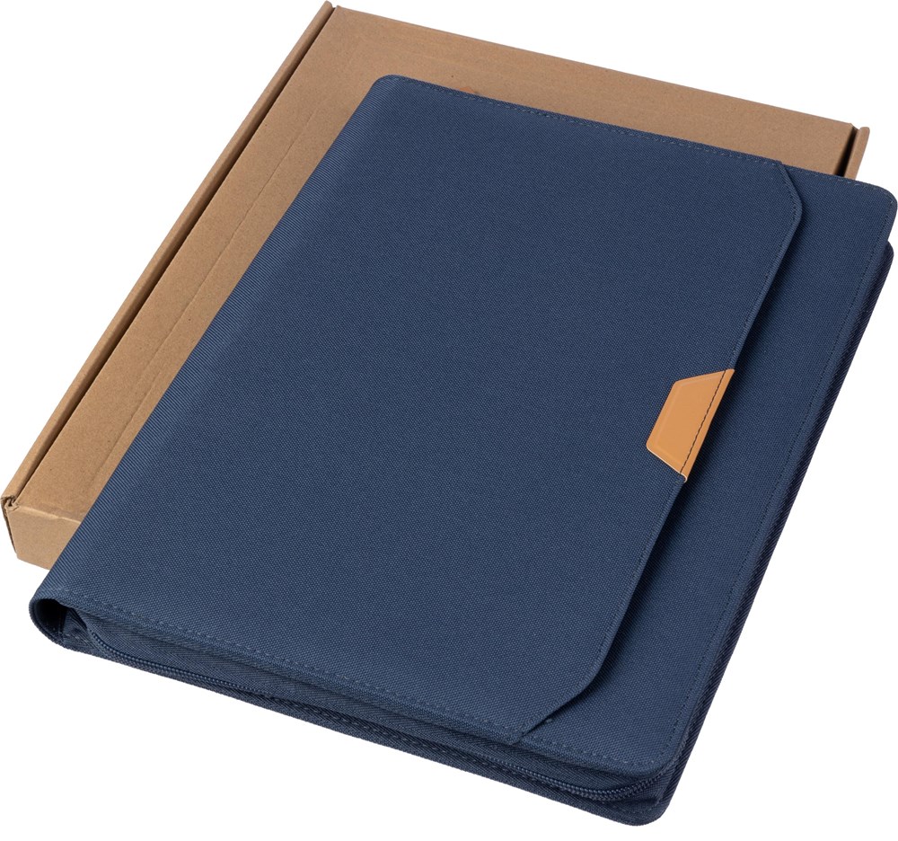 rPET map (ca. A4) met PU-detail en rits. Inclusief notitieboek met 20 gelinieerde pagina’s, meerdere vakken en een pennenlus. Klein vak aan de voorkant. Individueel verpakt in een bruine kraftdoos.