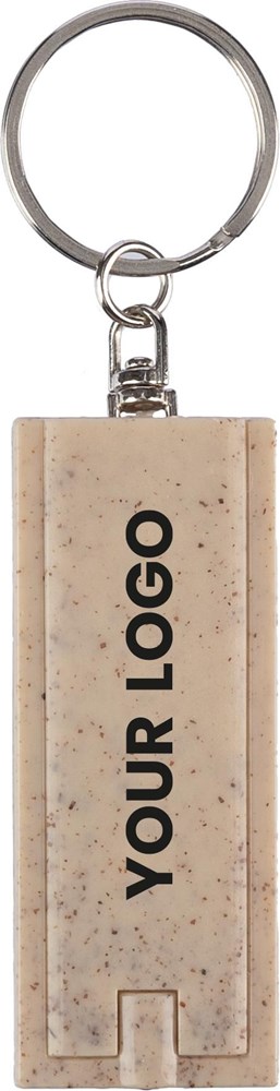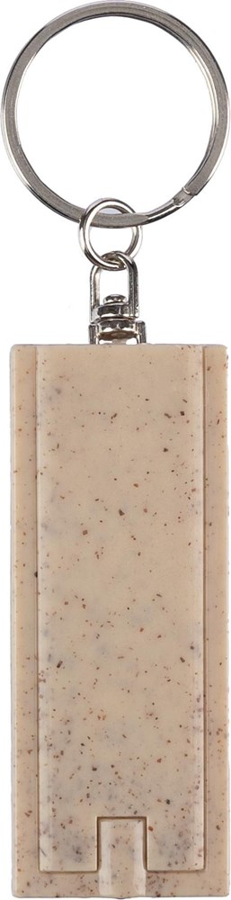 Tarwestro sleutelhanger met LED-licht, metalen ring en drukknop. Één LED-licht. Individueel verpakt in een gerecyclede polybag.