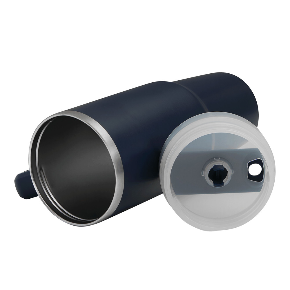 Vacuüm drinkbeker DRINK DELUXE, dubbelwandig: binnen- en buitenkant van RVS, met praktisch handvat, transparant kunststof deksel met veilige schroefdop, siliconen afdichtring, drinkopening met schroefdop en transparant rietje, inhoud ca. 900 ml