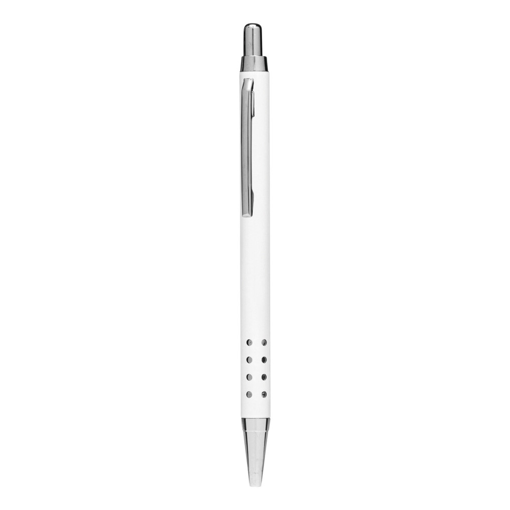 Aluminium balpen BUKAREST: barrel met gaatjes-design, drukknopmechanisme, grote vulling, blauwschrijvend