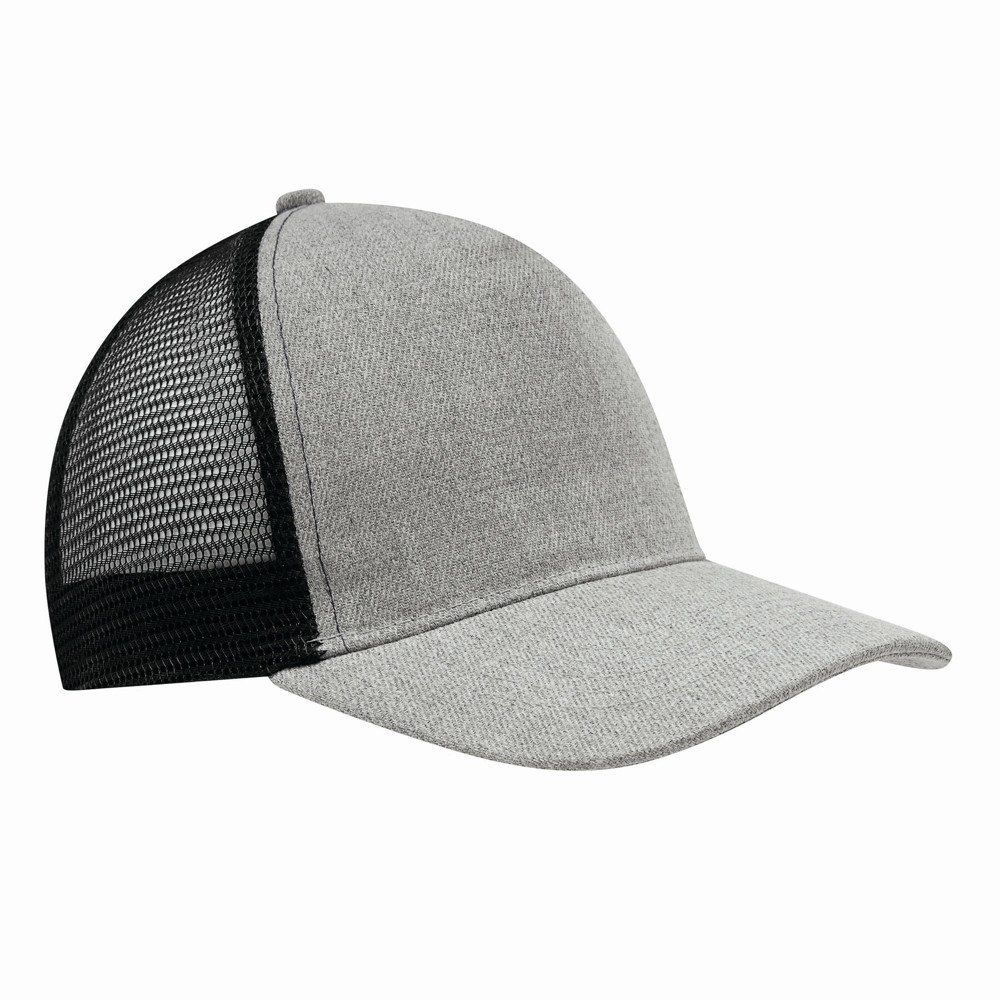5-Panel-Cap CASUAL FIT, 2 kleuren: versterkt, gemêleerd frontsegment, overige segmenten van mesh, in maat verstelbaar d.m.v. kunststof sluiting aan de achterkant