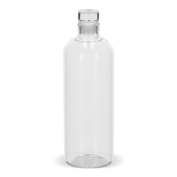 Gebruik deze kristalheldere borosilicaatglazen fles om te drinken, te mixen of je favoriete drankjes te serveren. De slanke glazen fles heeft een flexibele stop om morsen te voorkomen en je drankjes vers te houden. De afwezigheid van zichtbare naden versterkt het elegante ontwerp, waardoor het een verfijnde keuze is voor elke gelegenheid.