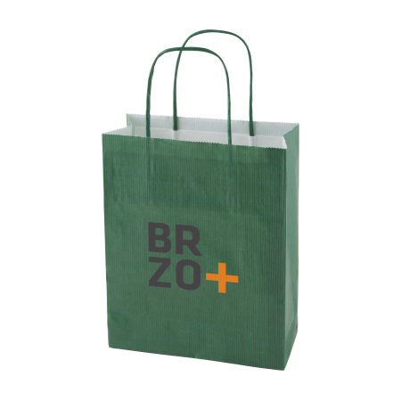 Papieren tas 240x120x310 mm in 11 kleuren, inclusief goud en zilver, met gedraaide hengsels in kleur van de tas. 90 gr/m2
