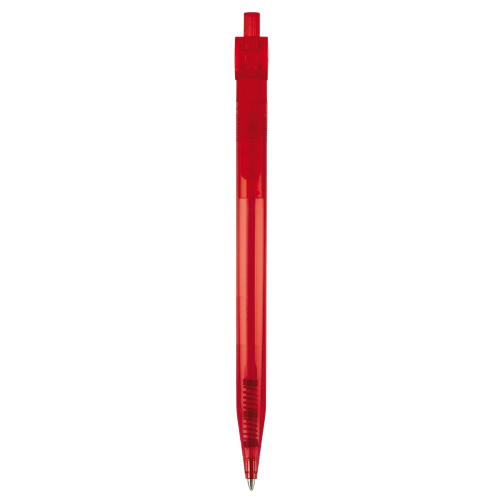 Transparante Toppoint design balpen, geproduceerd in Duitsland. Deze pen bevat een blauwschrijvende X20 vulling voor 2,5km schrijfplezier.