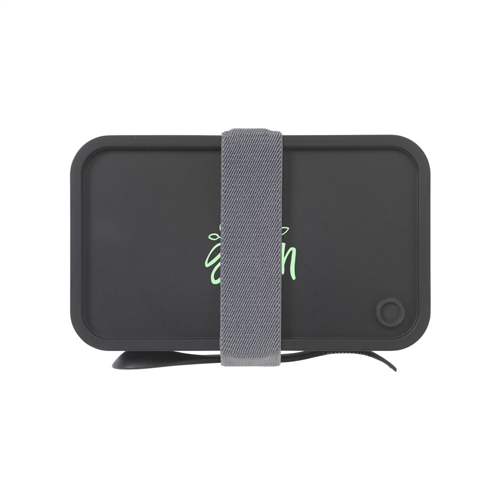 Lunchbox van PP kunststof. Het perfect sluitend deksel heeft een siliconen afsluitring en een ventilatieopening met siliconen dop. Inclusief 3-in-1 vork, lepel en mes. Met uitneembare verdeler en sluitelastiek. Deze box mag in de koelkast en is dus ook te gebruiken als luchtdichte vershoudbox. Geschikt voor gebruik in de magnetron en diepvries. Niet vaatwasserbestendig.