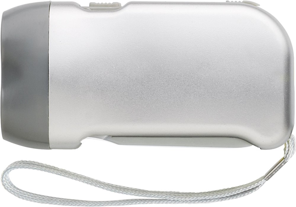 Frosted kunststof dynamo zaklamp met 2 LED lampjes en polskoord, incl. batterijen.meer