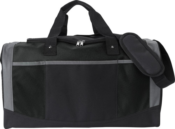 Polyester (600D) reistas met korte hengsels en verstelbare draagband. Een groot vak met ritssluiting, een gaasvak aan de zijkant, 3 voorvakken. Versterkte bodem.