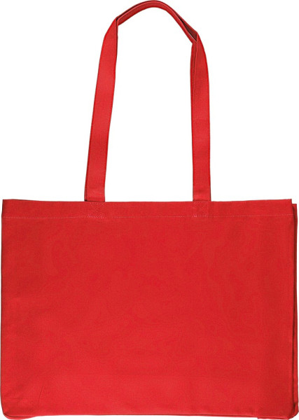 Geverfd katoenen (220 gsm) draag-/boodschappentas met 10 cm inzetstuk. Maximale draagkracht: ca. 8 kg. Dit product is OEKO-TEX® STANDAARD 100 gecertificeerd.