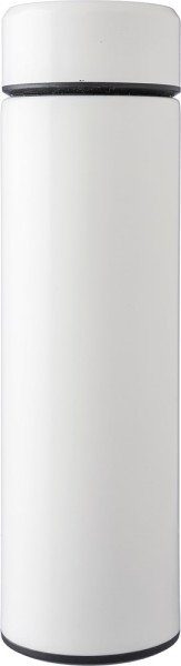 Roestvrijstalen dubbelwandige drinkfles (425 ml) met een ingebouwd, verwijderbaar theefilter. De binnenkant is van roestvrij staal 304 en de buitenkant van roestvrij staal 201. Per stuk verpakt in een bruin kartonnen doos.