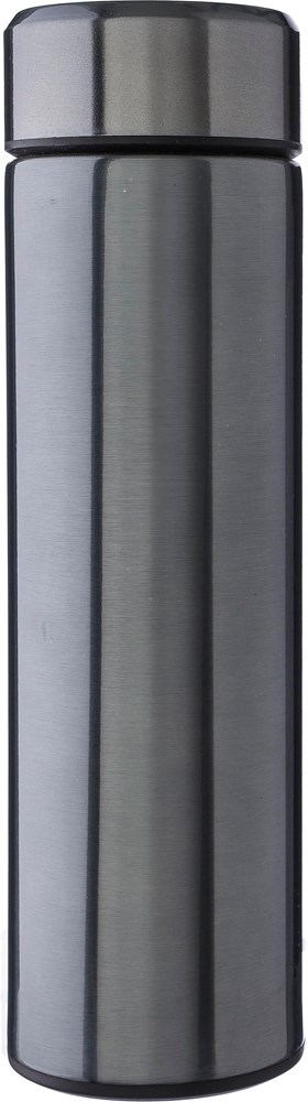 Roestvrijstalen dubbelwandige drinkfles (425 ml) met een ingebouwd, verwijderbaar theefilter. De binnenkant is van roestvrij staal 304 en de buitenkant van roestvrij staal 201. Per stuk verpakt in een bruin kartonnen doos.