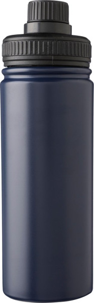 Roestvrijstalen dubbelwandige drinkfles (500 ml) met PP-dop, PP schroefdop en draaghandvat. De binnenkant is van roestvrij staal 304 en de buitenkant van roestvrij staal 201. Per stuk verpakt in een bruin kartonnen doos.