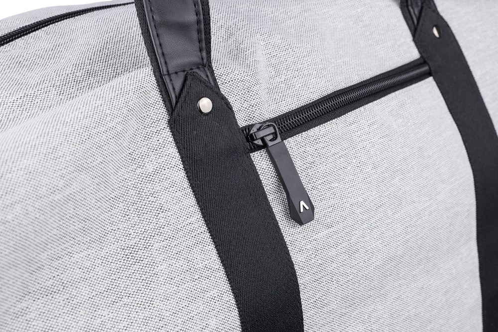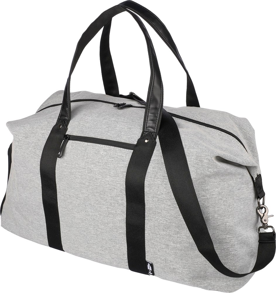 600D rPETpolyester sporttas met 150D PU voering en PU lederen details. Met 4 mm schuim aan de binnenkant en een 1 mm PE-plaat. Inclusief een klein voorvak met rits, een groot vak met rits en een schoenenvak aan de zijkant. Verstelbare schouderriem en twee grote draaggrepen. Inclusief een rPET-label aan de voorkant.