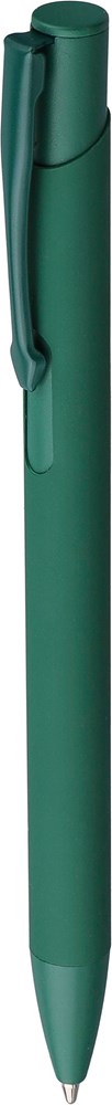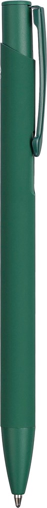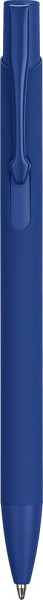Gerecycled aluminium balpen met een rubberen coating op de houder. De clip, punt en drukknop zijn in bijpassende kleur. De clip is van metaal en de punt van plastic. Inclusief gegraveerd gerecycled aluminium logo. Blauwe inkt.