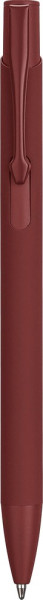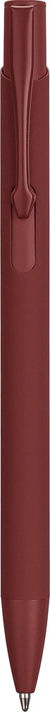 Gerecycled aluminium balpen met een rubberen coating op de houder. De clip, punt en drukknop zijn in bijpassende kleur. De clip is van metaal en de punt van plastic. Inclusief gegraveerd gerecycled aluminium logo. Blauwe inkt.