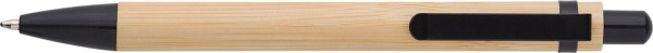 Bamboe balpen, blauwschrijvend, met metalen accenten.meer