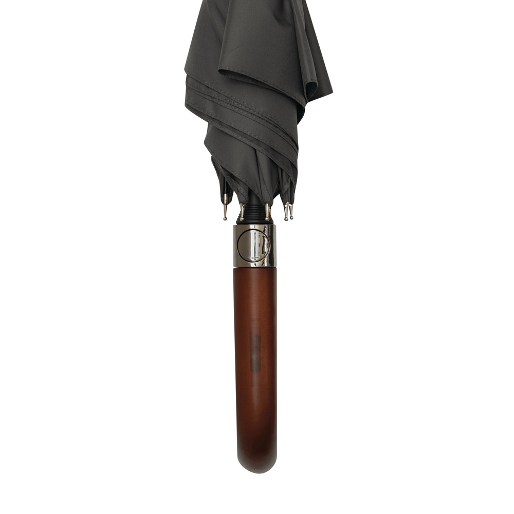Automatische golfparaplu EARL: zwarte metalen steel, glasvezel baleinen en metalen tips, houten...meer