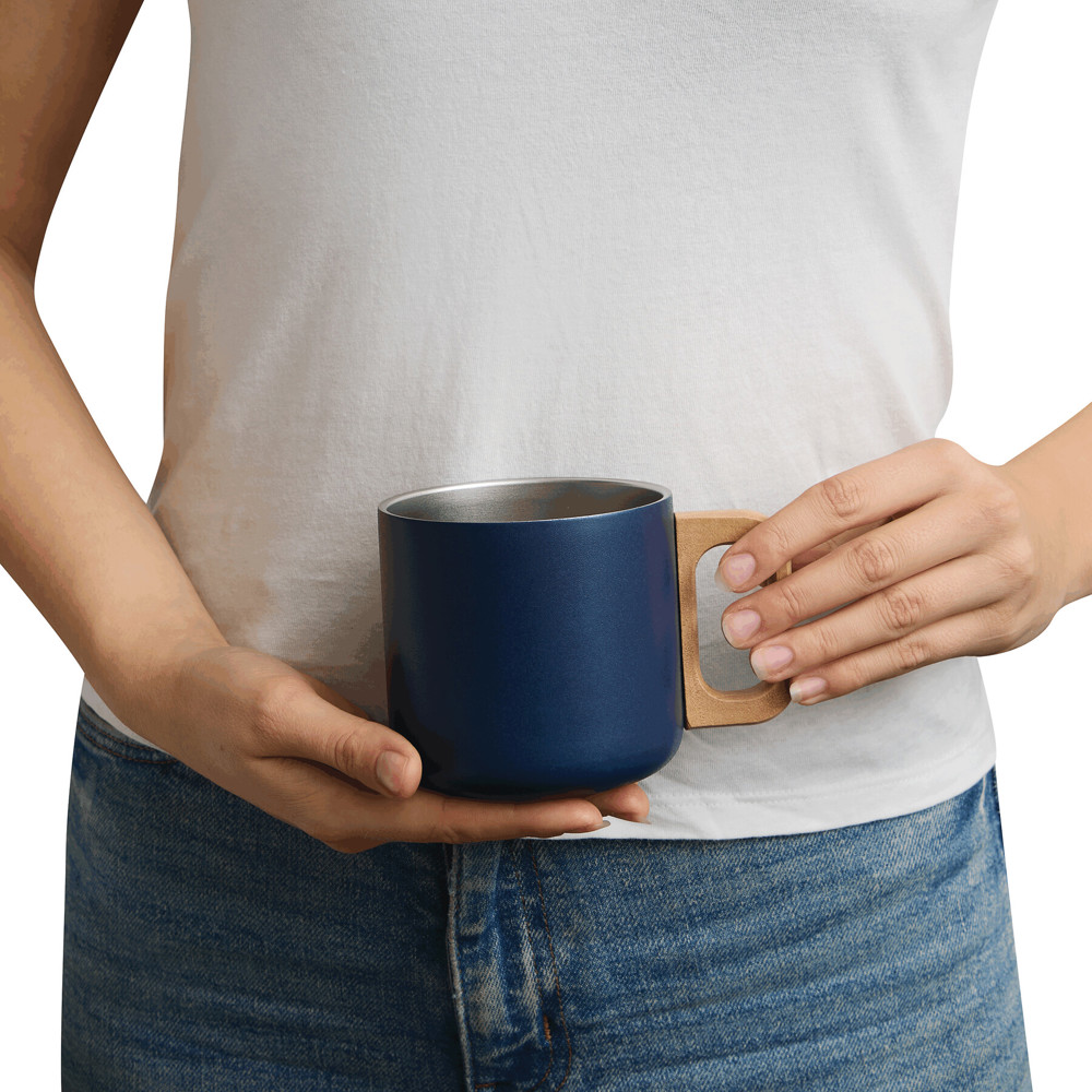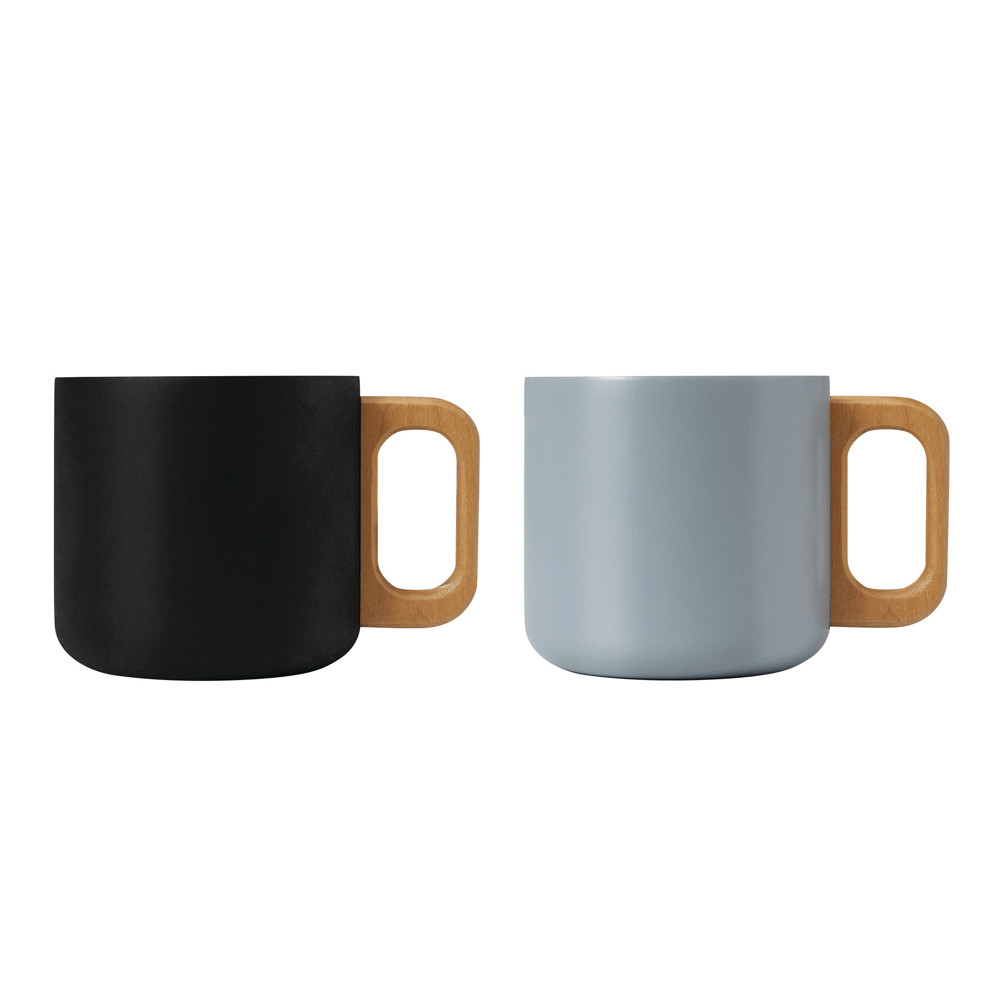 RVS beker RUSTIC TRIP, dubbelwandig: met houten handvat, gekleurde matte poedercoating aan de...meer