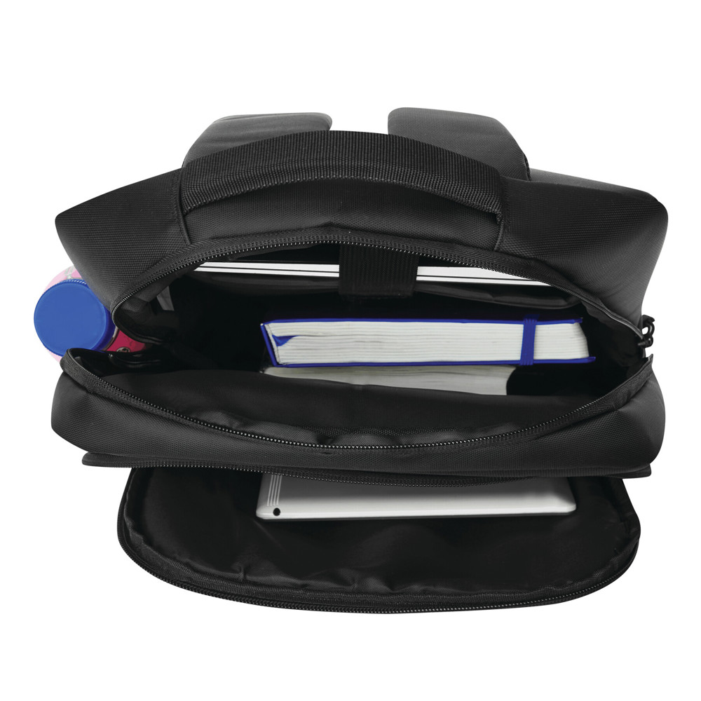 Rugtas PRINCETON: 1 voorvak met ritssluiting en organizer (2 steekvakken, 2 pennenhouders), 1 voorvak met horizontale ritssluiting en reflecterende strip, 1 steekvak aan de zijkant, 1 hoofdvak met ritssluiting en gefoamd binnenvak voor laptop of tablet, gefoamd handvat, ergonomisch gevormde gefoamde schouderriemen en gefoamd rugpand, riem als reporterfunctie achterop.