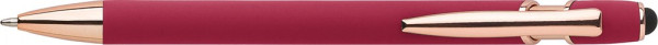 Aluminium balpen met roségouden details en stylus. Blauwschrijvend. Bij het graveren zal het ontwerp zilverkleurig zijn.