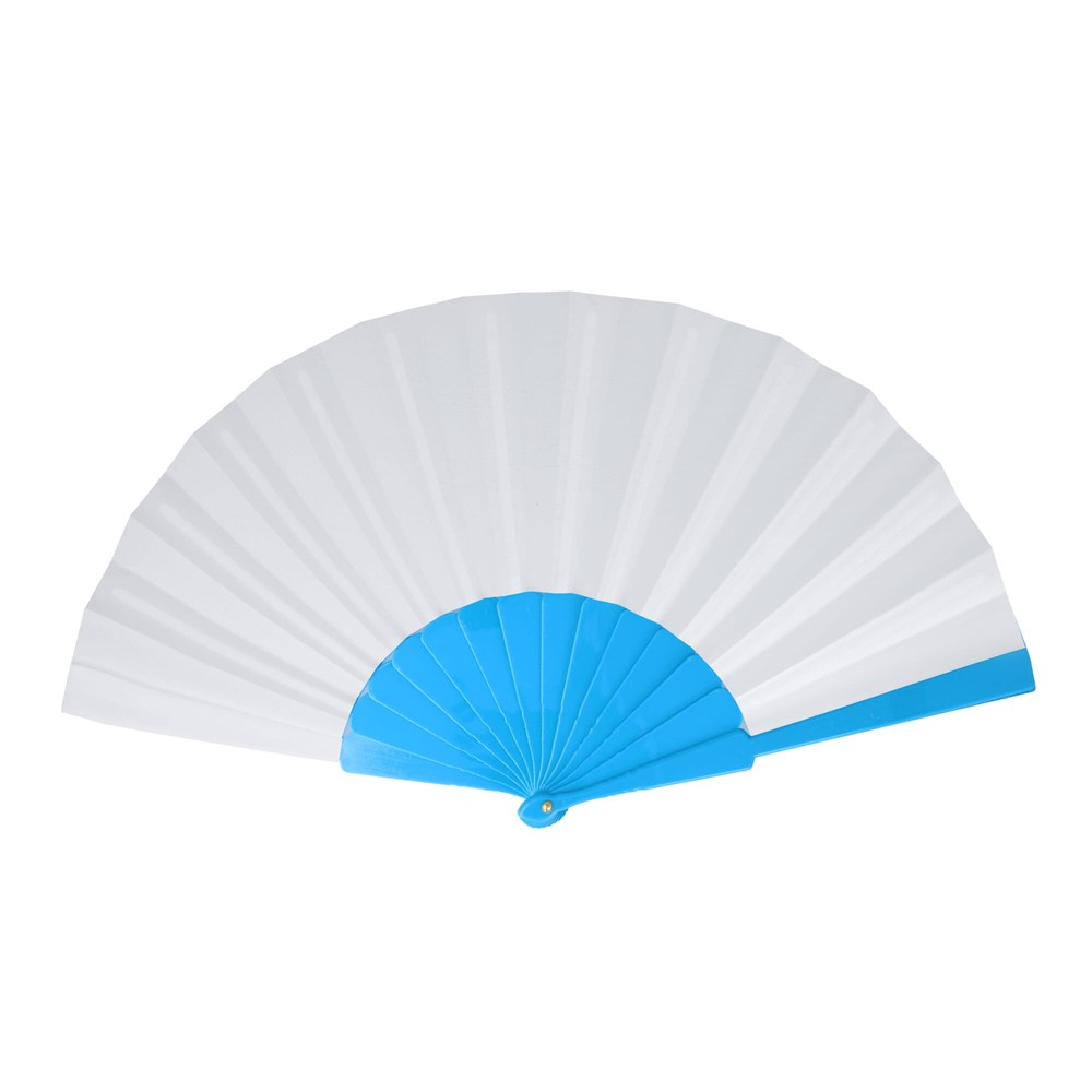 Waaier van kunststof en polyester. Verkrijgbaar in verschillende felle kleuren, ideaal voor buiten evenementen en hete zomerdagen.