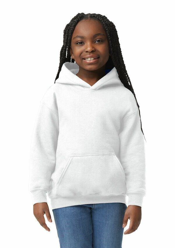 Gildan HeavyBlend Sweater met capuchon met buidelzak voor kinderen in de maten 104 t/m 176. Een populaire hoodie dankzij de uitstekende prijs-kwaliteitverhouding. Het verwerkte katoen in de sweater is van gecertificeerd U.S. Cotton. Het voldoet aan de CPSIA-vereisten.
