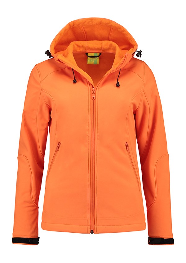 Lemon & Soda softshell jack voor dames met capuchon en twee zakken met rits van een hoogwaardige kwaliteit. Softshell is te borduren en hierdoor is het jack in te zetten als gepersonaliseerde promotiekleding of bedrijfskleding.