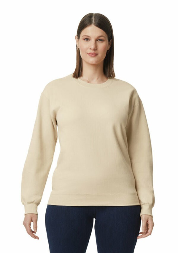 Gildan Softstyle Mid-Weight Unisex Sweater met ronde hals van zachte ringgesponnen katoenmix. De Softstyle Midweight Fleece heeft een geborstelde binnenkant met een 100% katoenen buitenkant, ideaal voor DTG-printen.