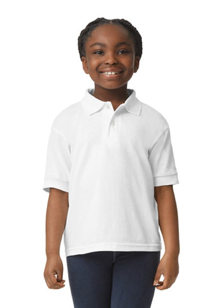 Gildan Dry Blend Jersey Poloshirt voor kinderen met korte mouw. Het verwerkte katoen in het shirt is van gecertificeerd U.S. Cotton. Comfortabel door het vochtafvoerende Dry Blend materiaal. Ideaal om te bedrukken of te borduren. Het voldoet aan de CPSIA-vereisten.