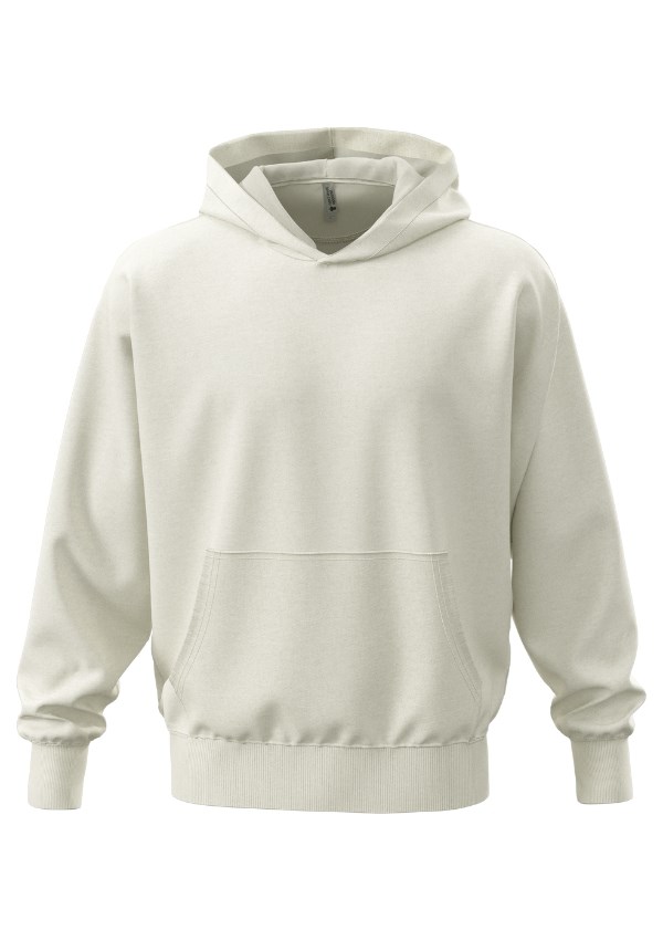 Next Level Apparel unisex sweater met capuchon. Gemaakt van een zware mix van gekamd katoen en gerecycled polyester met een oversized pasvorm. Met brede geribde manchetten, kraag en tailleband.